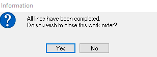 - You will be prompted to close the job line. If it is completed, select "Yes."