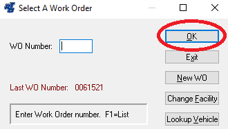 - Enter the Work Order number you will be posting to and select the “OK” button.