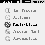 - On the M5900 handheld LCD screen, select “Tools/Utils” and press the “Enter” key.