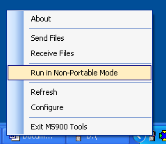 - Right click on the M5900 Icon in the taskbar, then click on “Run in Non-Portable Mode”.