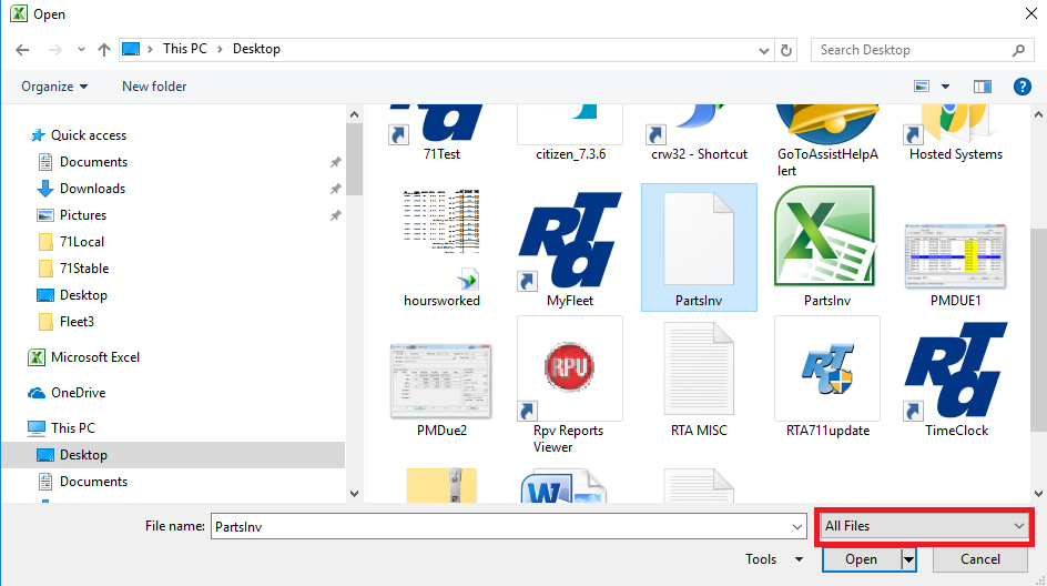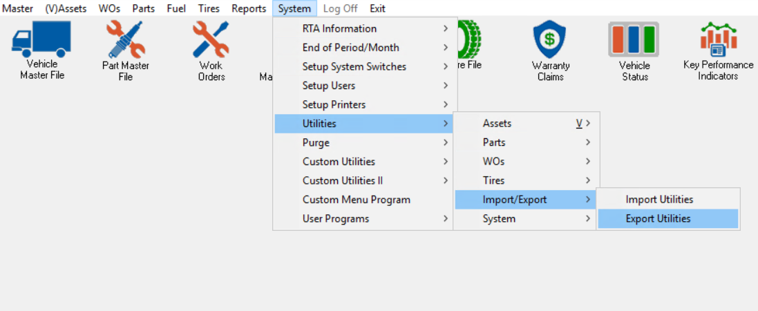 There are three utilities that can export into excel and then import back into RTA. They are Vehicles, Parts and VMRS export/imports. Here is the "How To", using Parts as the example, but it works the same for the others.