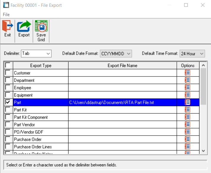 In RTA, there are a couple of utilities that allow you to export data into excel, edit and add to the data, and then import back in to the database. This guide will go over the steps to do that using the parts export/import as an example. Many reports are also exportable and you can use this guide to walk you through how to do that as well.