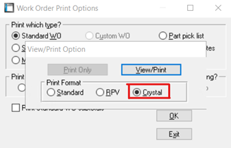 Select your print type (in the case of a WO) and select “OK”. Then select the Crystal print format when prompted. Select View/Print.