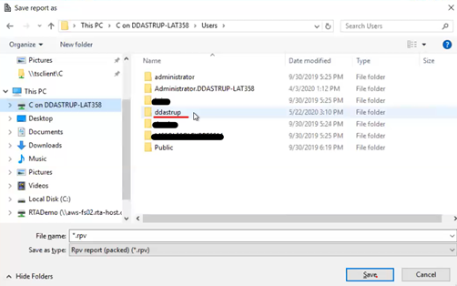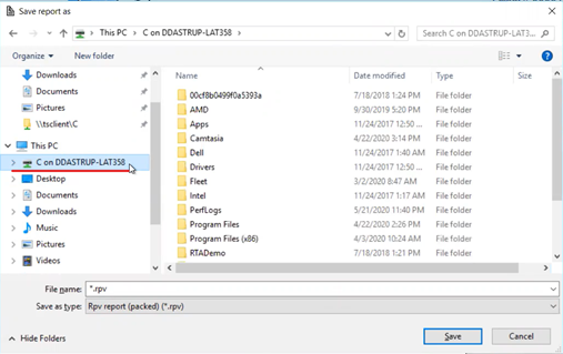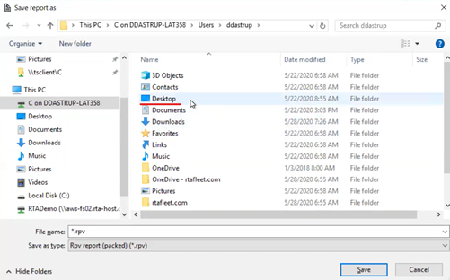 When saving/exporting a larger amount of data, it can take a greater amount of time to export directly to your local drive. Remember, RTA is not only gathering the information, but formatting it AND exporting it from one server to another. We recommend saving this file within RTA with the following steps, THEN use your mouse or keyboard to Copy and Paste to your local machine.