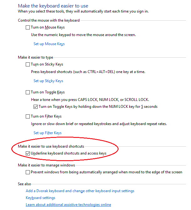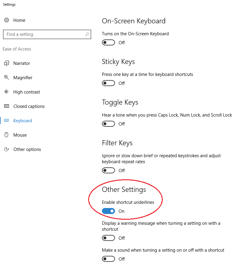 → Enable Shortcut underlines (ON)