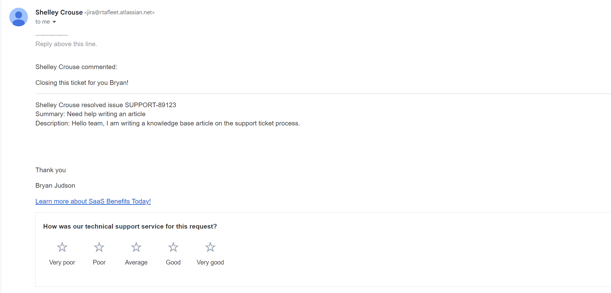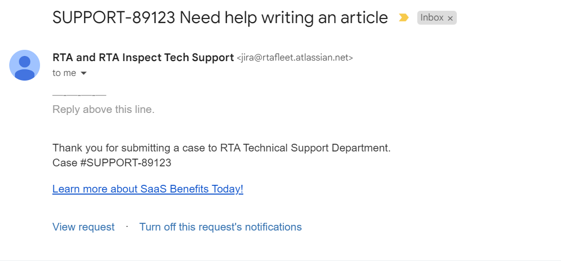 In the body of the email add any additional information such as if the issue is in Web or Classic RTA