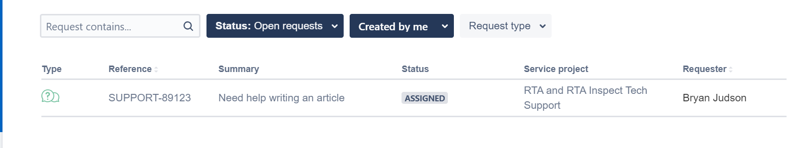 A confirmation email will be sent after a ticket is submitted that has a link to view the Support Request: