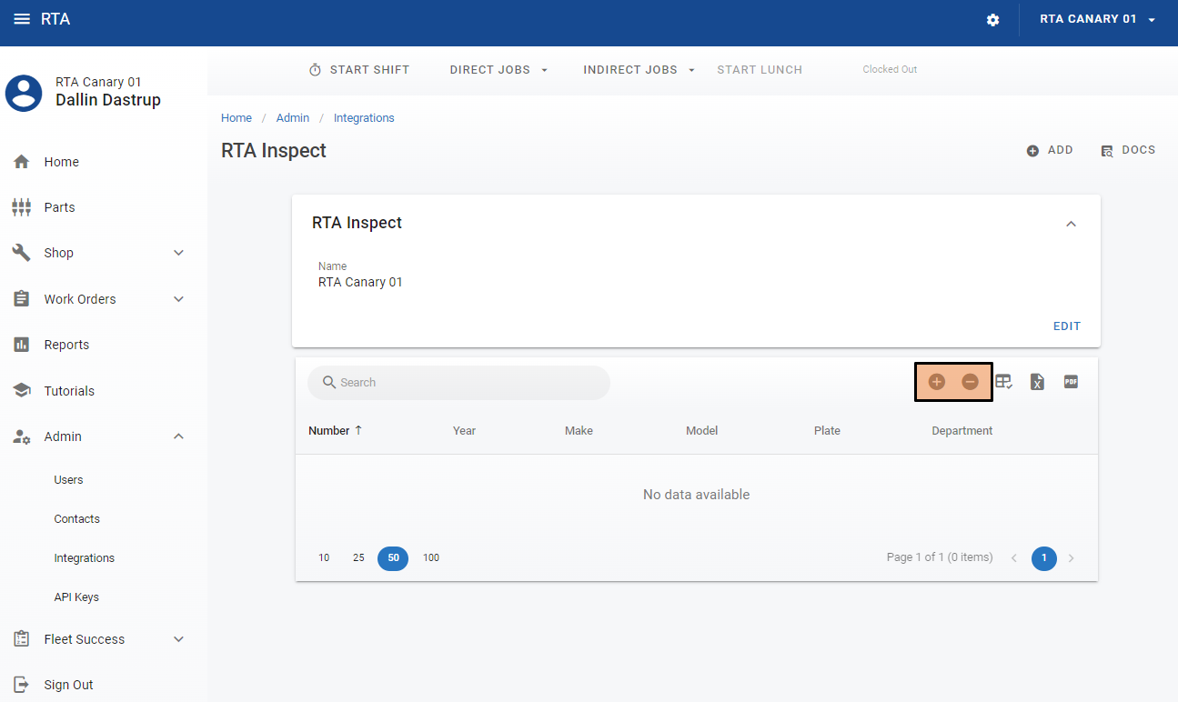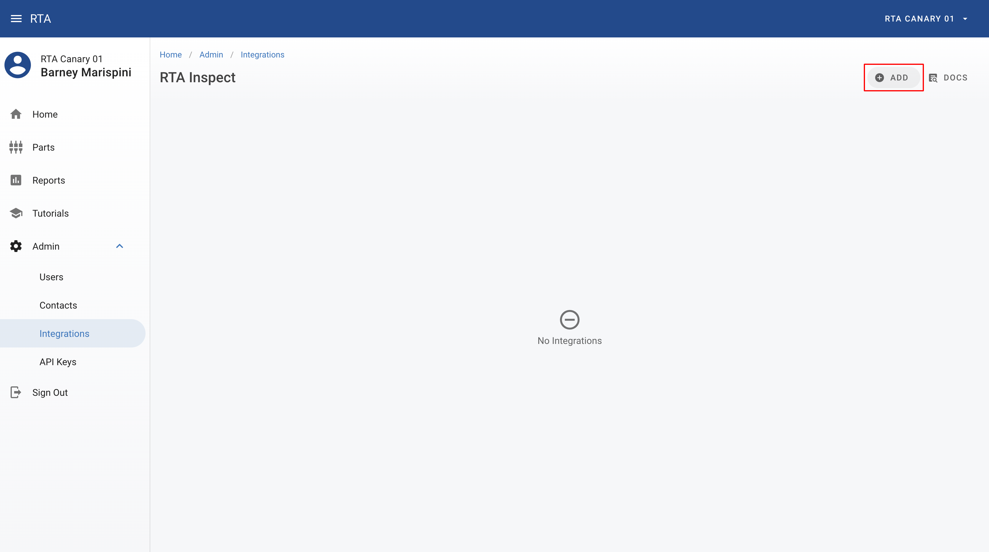 Click the “Admin > Integrations” link in the left sidebar, then select “RTA Inspect”