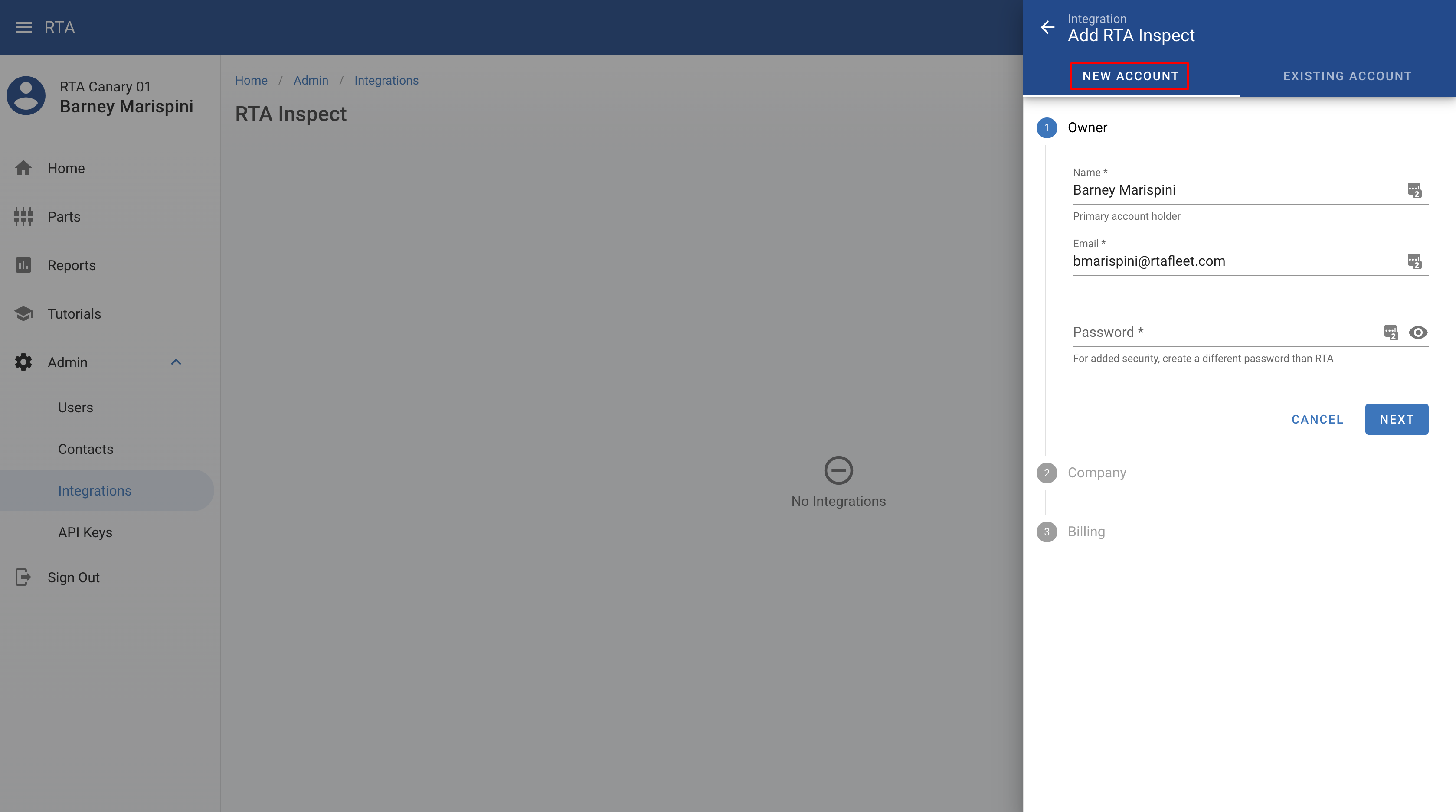 Select whether you’re creating a brand new RTA Inspect account or linking to an existing one