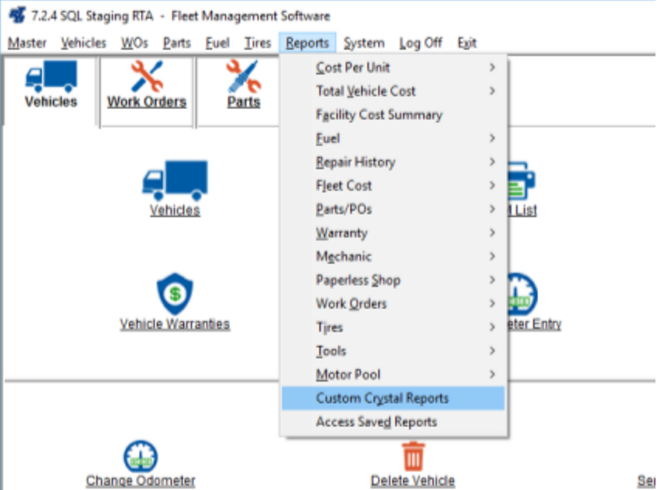 Example: C:\FLEET\REPORTS\CUSTOM CRYSTAL REPORTS