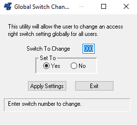 - Select Access Rights > Global Switch Change from the menu or click on the Global Switch Change icon in the toolbar.
