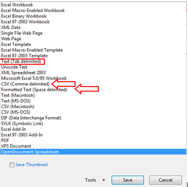 Save it as a text file using one of the delimited formats, like tab, comma or space. The data does not have to be in any specific order and you can omit fields from the file that are not needed.