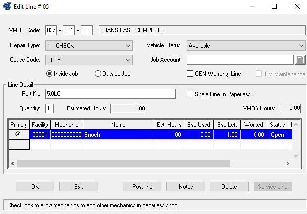 - Enter the part number included in the kit or press F1 to select a part from the lookup list.