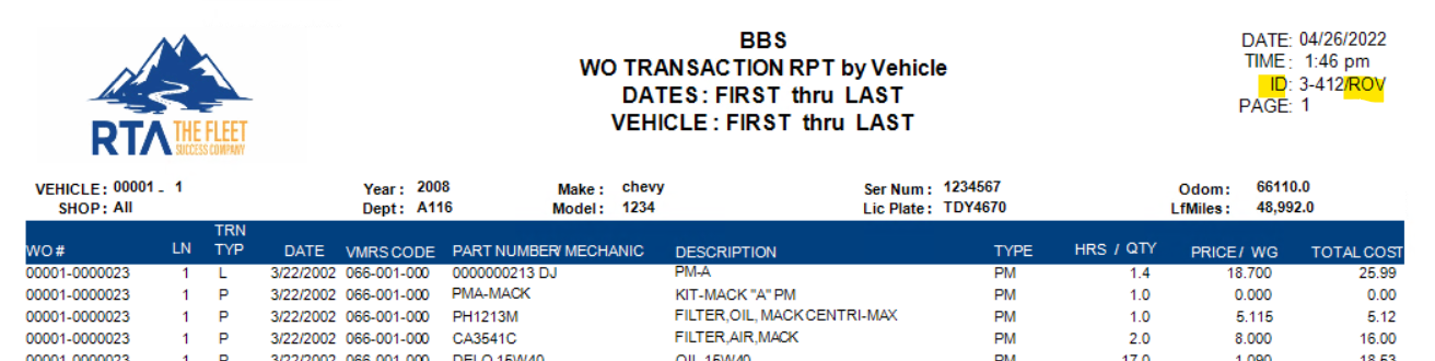 To find this report again, tap Alt + ROV. The report parameters will pull for a brand new report session.