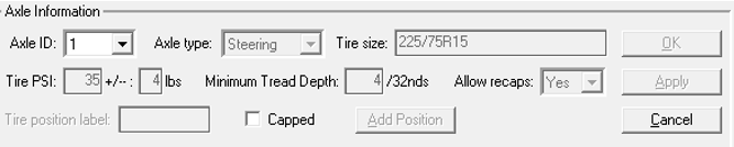 Lastly, select whether or not Recapped tires will be allowed to be mounted on this axle. This is notational information only. The default for all axles is Yes.