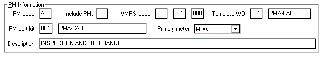 - If the default template work order is used (from the PM report prompt), only one work order line will be created using the VMRS code from the vehicle PM record.