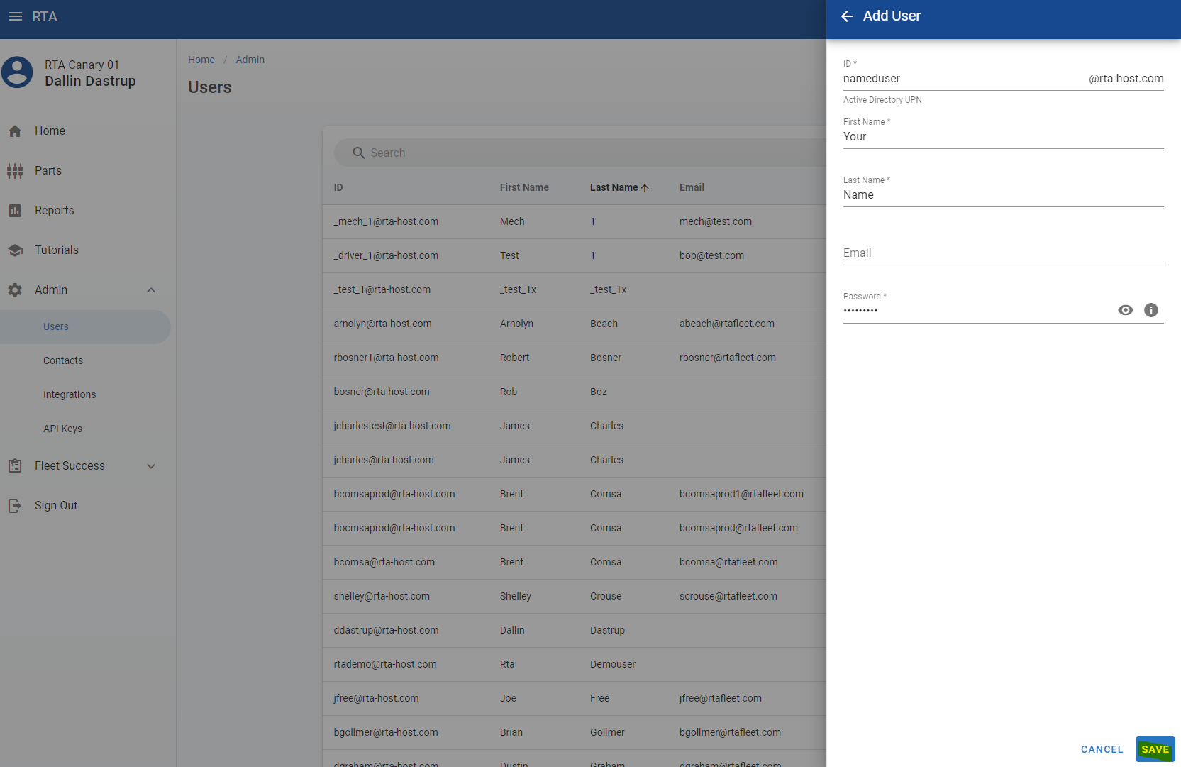 In its initial phase, the Web App’s primary purpose is to allow for user management. This lets administrators setup users and manage their permissions for the RTA mobile application.