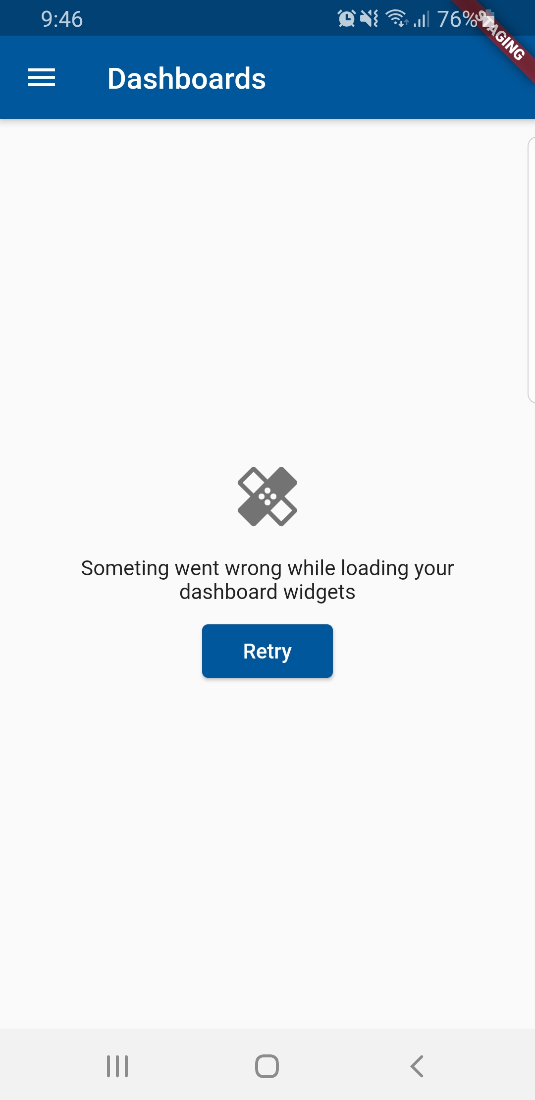 If you see the image below when you log in, this is because your profile has not been set up properly. You can still get into the other areas of the mobile app. Your dashboards are just not linked. This is NOT a bug. If you want your dashboards to show up, you will have to get with your admin and edit your profile on app.rtafleet.com website. They will need to input in a Classic username to link the mobile app to your RTA username.