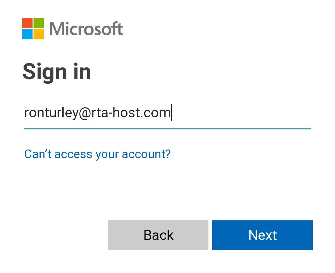 3. Then, tap “Log in at rta-host.com” and enter your username. It should follow this format: [username]@rta-host.com (Figure 3). When completed, tap “Next”.