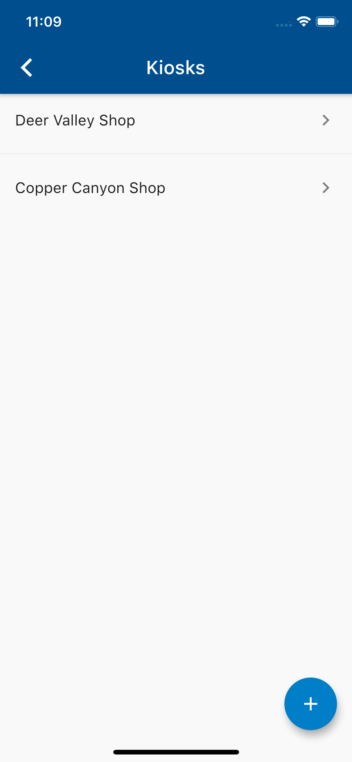 Click the “+” icon in the bottom-right corner of the Kiosk List Screen to add a new kiosk