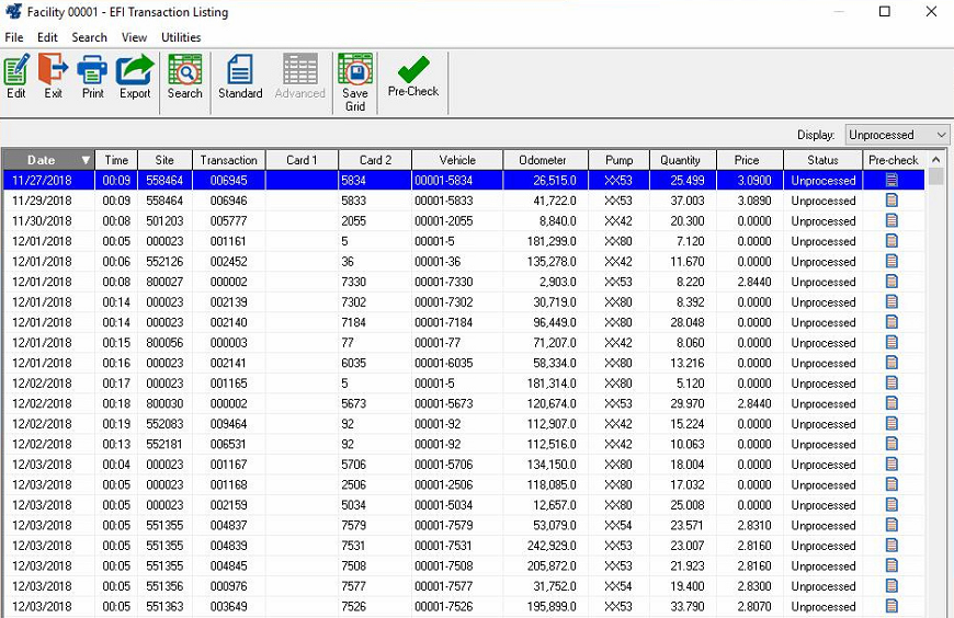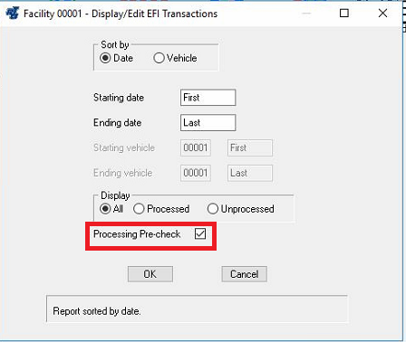 If you go to Fuel > Fuel Entry > Electronic Fueling > Edit Trans, you will now see a new check box at the bottom that says ‘Processing Pre-check.’