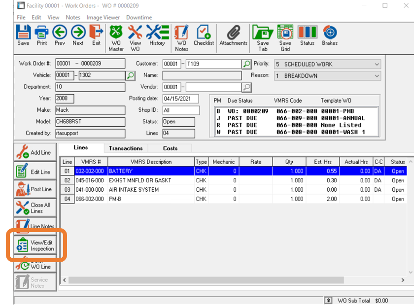 If all categories are set to Pass, you can select “Close Lines” at the bottom to process the WO to close.