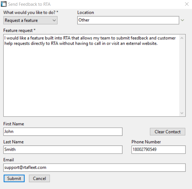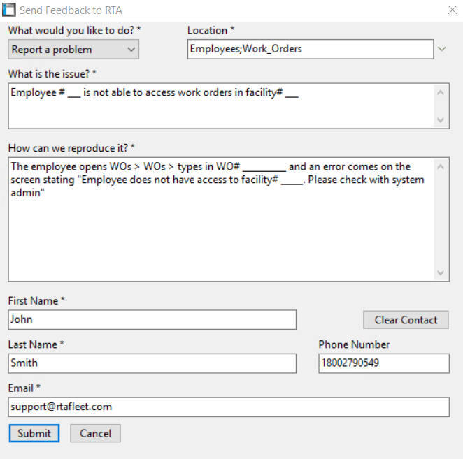 From time to time, errors and other problems might arise in RTA. In these instances, users can click on the Feedback Button and select “Report a Problem”. Detail the issue and the steps that were taken to cause this issue. It is our goal to discover if the new issue effects all our systems, or if it may be a little closer to home for the user experiencing it. If we can reproduce the issue, we can better understand how to fix it in a timely manner. For Example: