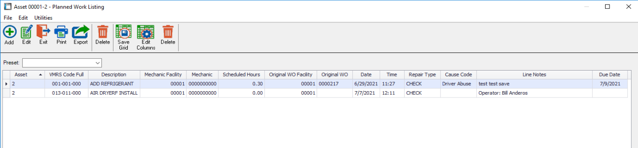This list, similar to most lists in RTA can be edited and filtered based on the user’s needs. One quick tip as of RTA Version 7.4.2 is that the Column Headers of “Due By” have been added, so planned work can be viewed by when it’s due. These “Due” values can be set to Date, Meter or PM (and include the PM Description).