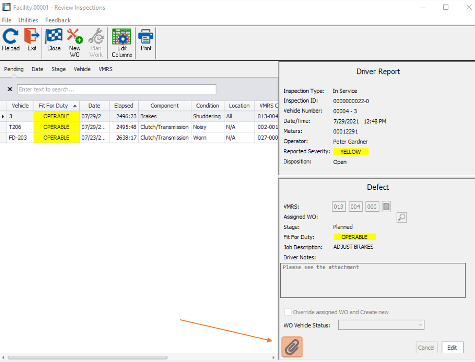 From this screen, the user can follow the https://docs.rtafleet.com/what%27s-new/7.3/review-driver-reports/ process to create a new work order line, processing this attachment from the driver reporting screen to the Work Order screen.