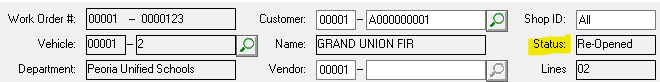 This status will show when a work order has previously been closed, and is currently in an “open” state. This can happen when edits are needed to previously closed work order lines, or when a meter or date need to be updated on a previously closed work order.